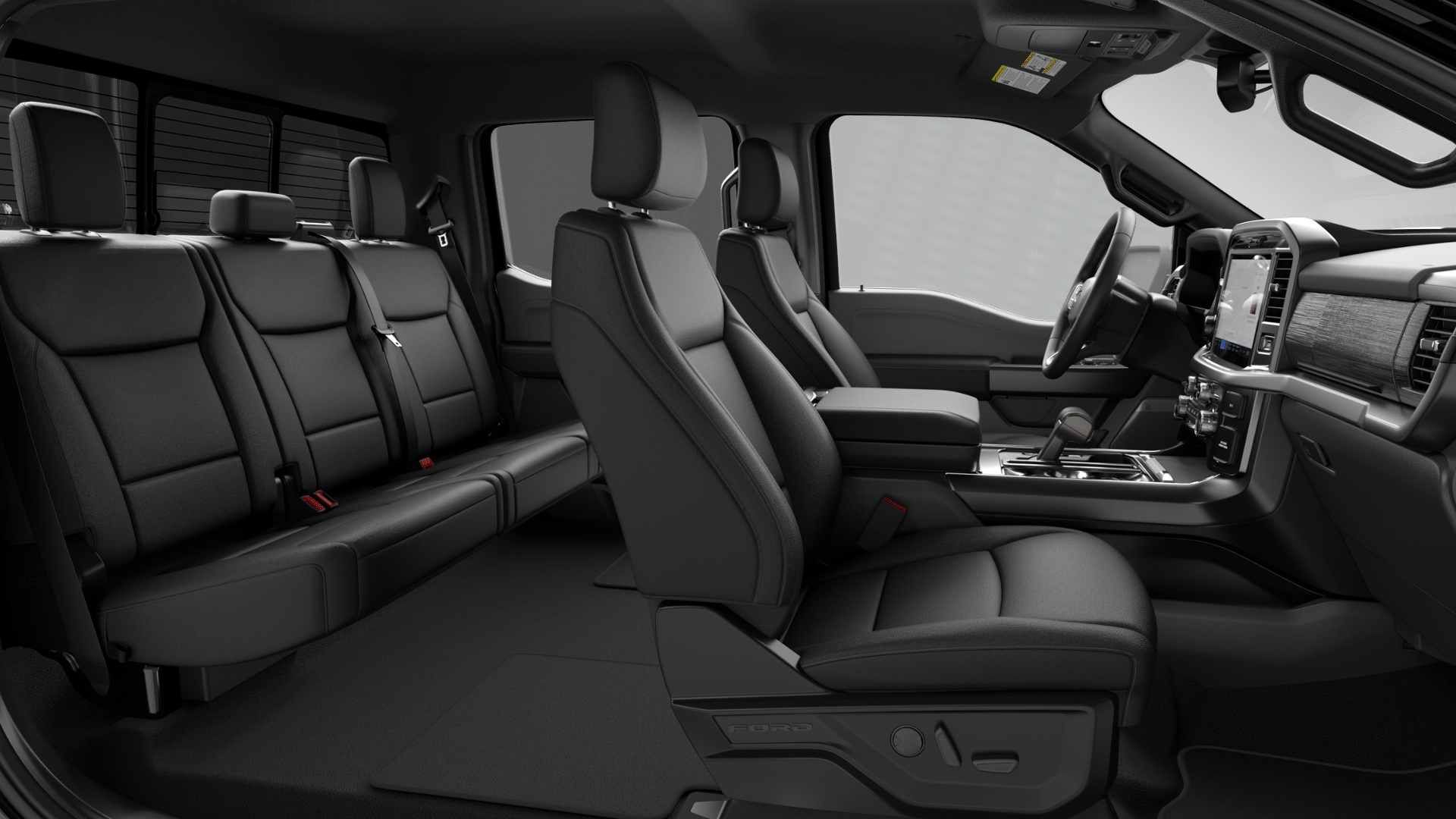 The 12-inch SYNC 4 touchscreen is the largest standard display in the segment for XLT models, larger than what's standard in the Ram 1500 Big Horn or Silverado LT.