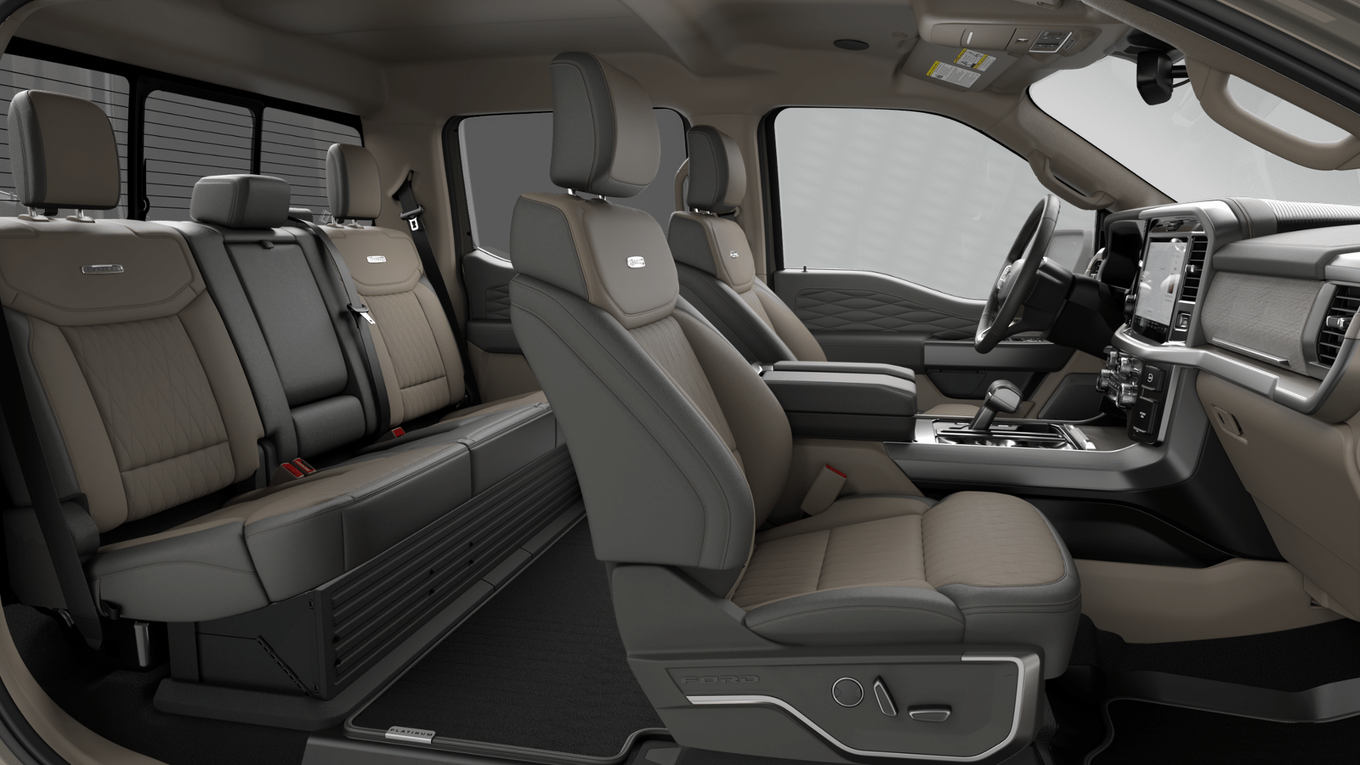 Standard power running boards and a power-operated tailgate with step are rare in this class, giving the F-150 Platinum a clear usability and convenience advantage.