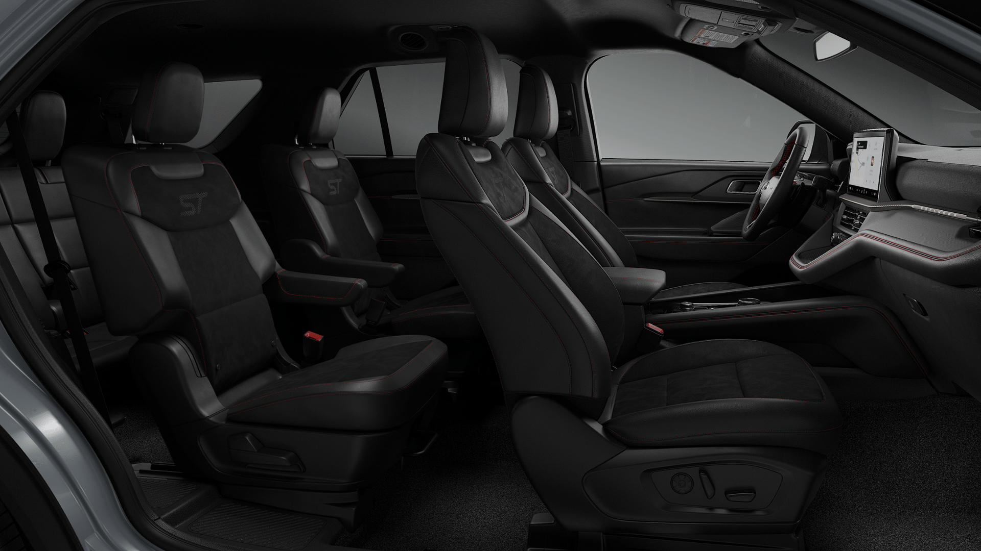 The Explorer ST features a specialized sport-tuned suspension and available rear-wheel drive, giving it more agile, responsive handling than most competitors in the three-row SUV segment.
