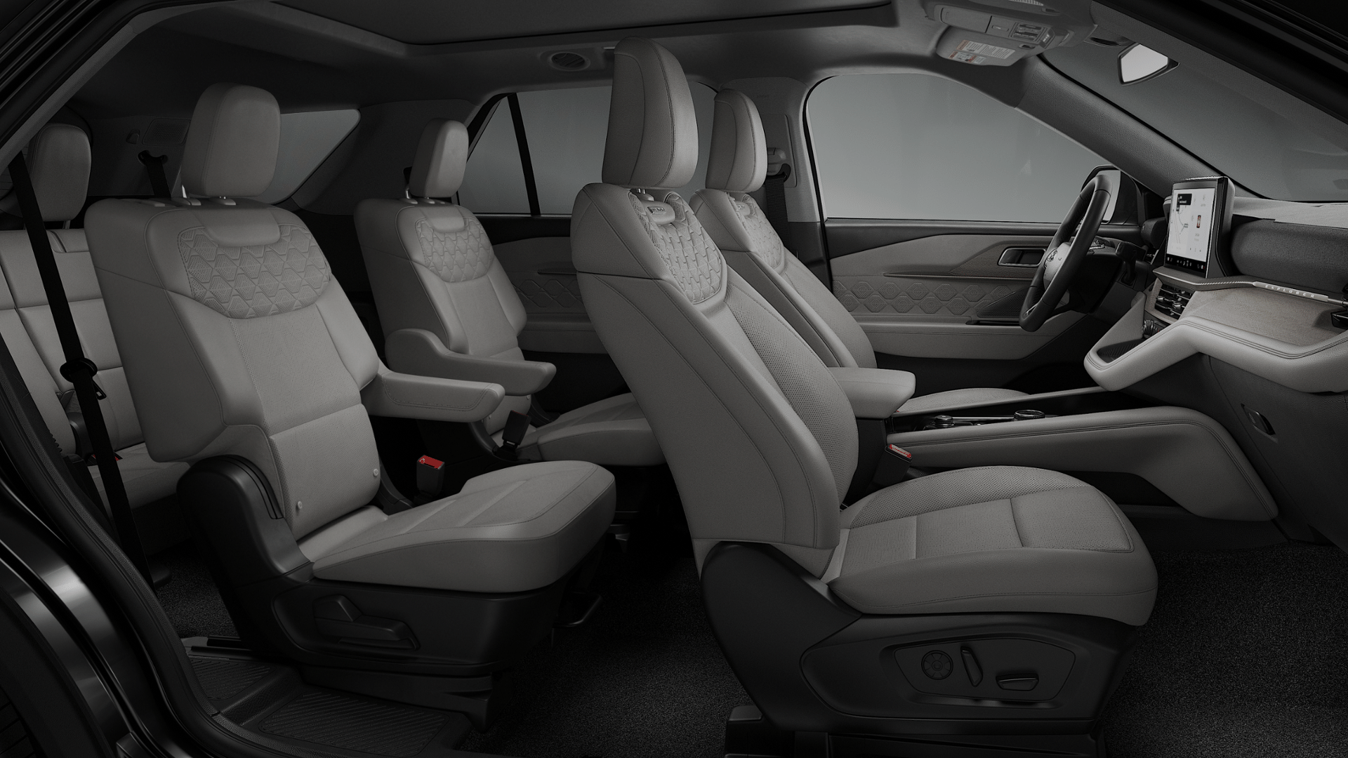 Features ActiveX trimmed heated and ventilated multicontour sport captain’s chairs, an 8-way power driver seat with memory, 6-way power front passenger seat, a heated leather steering wheel, and dual-zone front automatic climate control with separate rear HVAC.