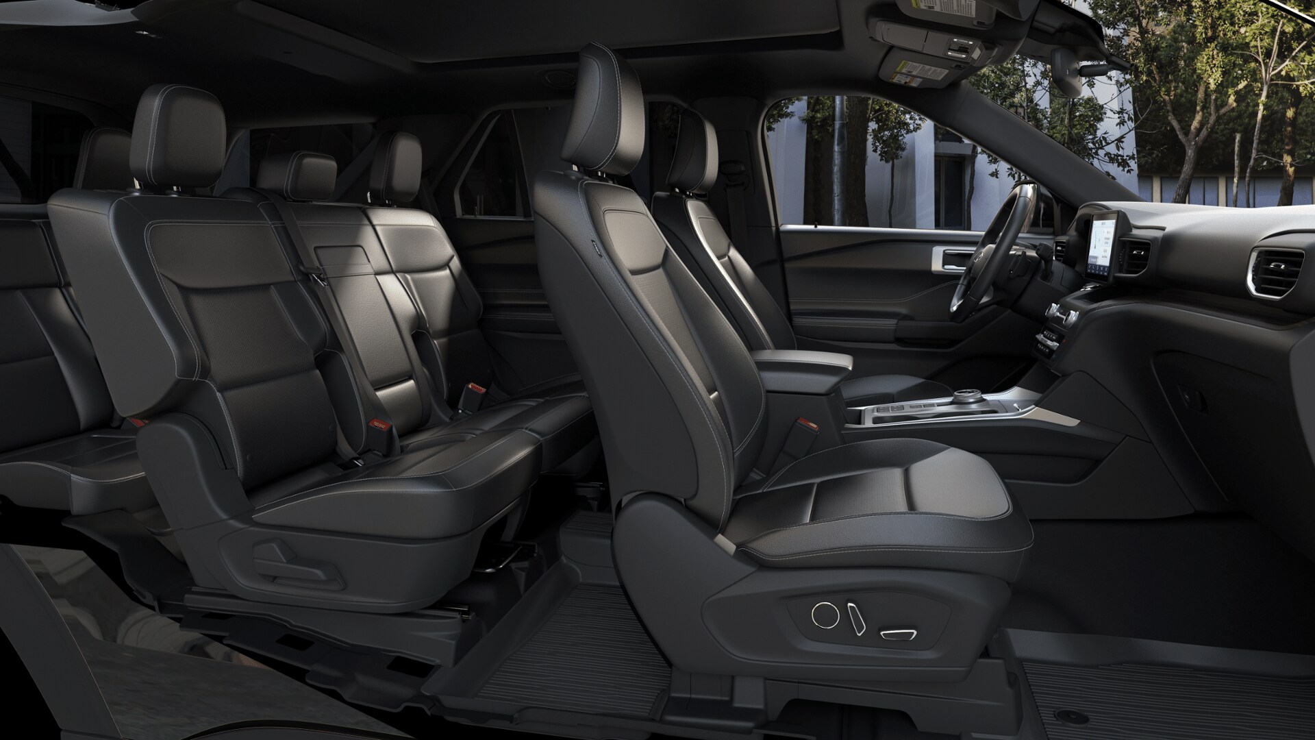 The 2020 Ford Explorer Limited features premium leather-trimmed seats for enhanced comfort and a luxurious interior feel.